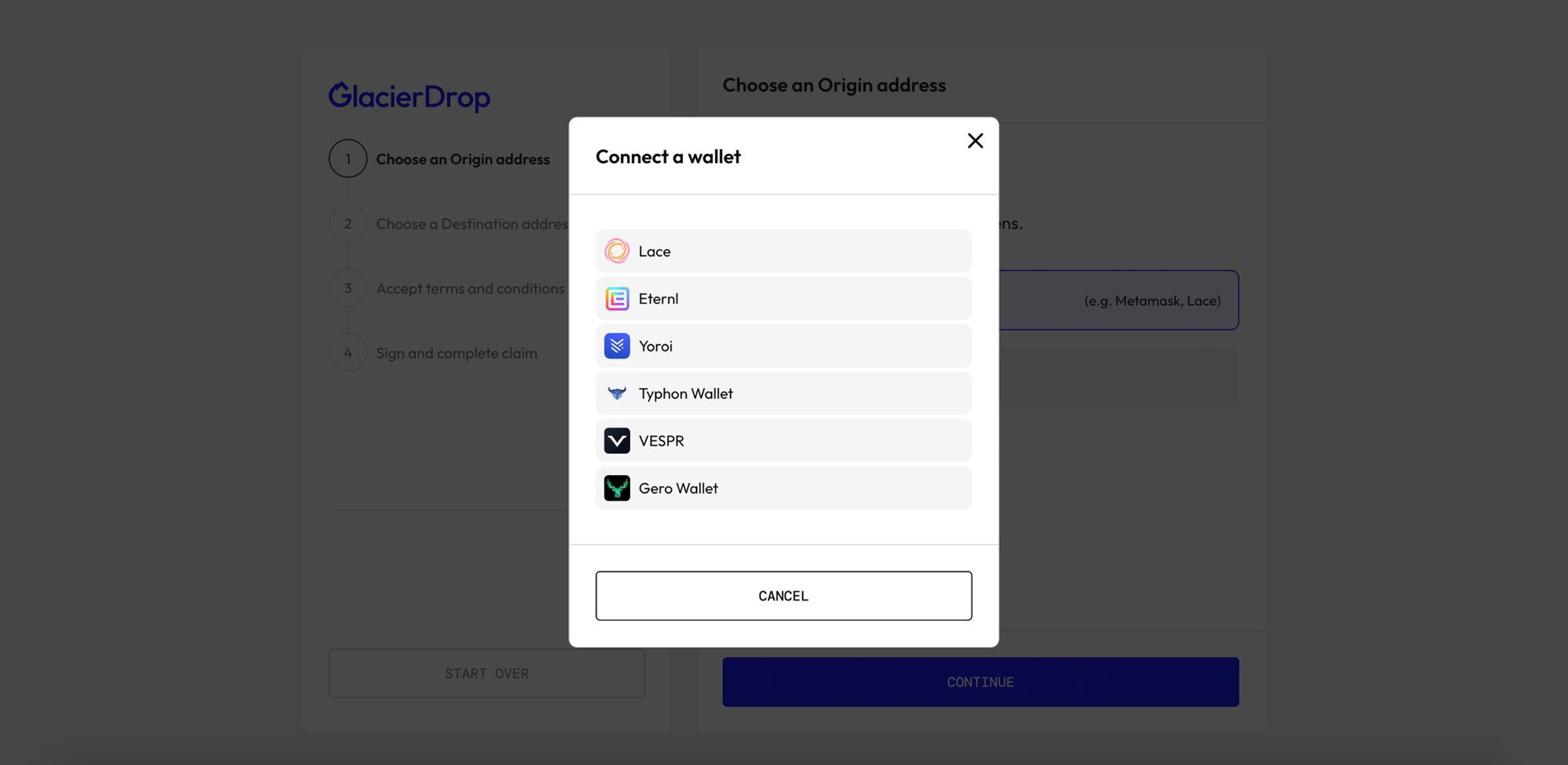 3. Wallets 👛 GlacierDrop currently supports these Cardano-native wallets and honestly, the list is quite generous. But hold tight, because this is exactly where our troubles began…
